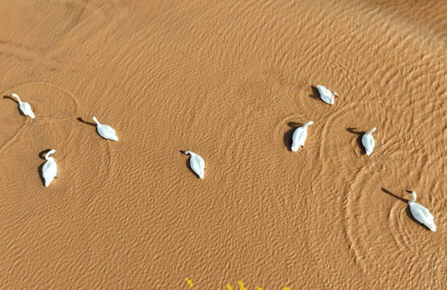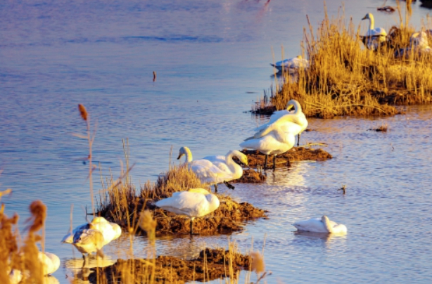初冬暖阳下,济南鹊山水库沉砂池与黄河相映成趣