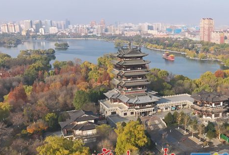 初冬时节,济南五龙潭公园色彩斑斓景致如画
