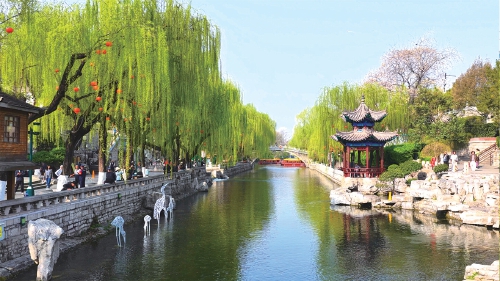 济南升温春意浓 护城河畔柳如烟