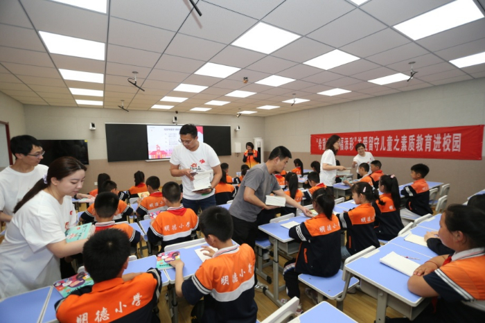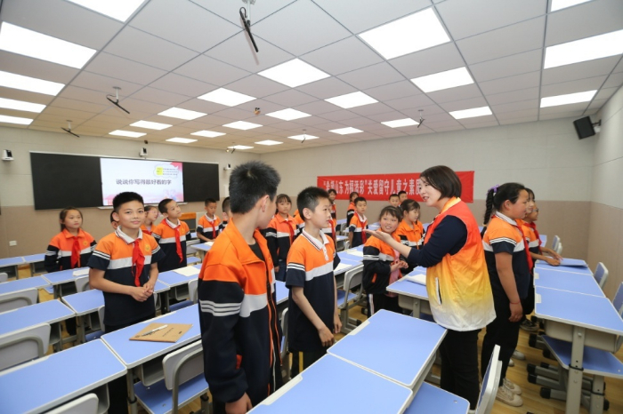 在武城县四女寺镇明德小学课堂内,不时传出阵阵朗诵声和孩子们的笑声。省福彩中心青年志愿者与山东广播电视台主持人携手,给孩子们带来了一堂趣味盎然的中华经典诵读课程。通过教授孩子们传统文化及诵读技巧,提高孩子们的学习兴趣,拓展孩子们的视野。志愿者还为学生发放了书籍。有趣的课程让孩子们耳目一新,生动的儿童图书让他们爱不释手。明德小学学生陆书硕高兴地说“又好玩又新鲜,从课堂上学到了甲骨文,老师们还给我发了三本书,我很开心!”
