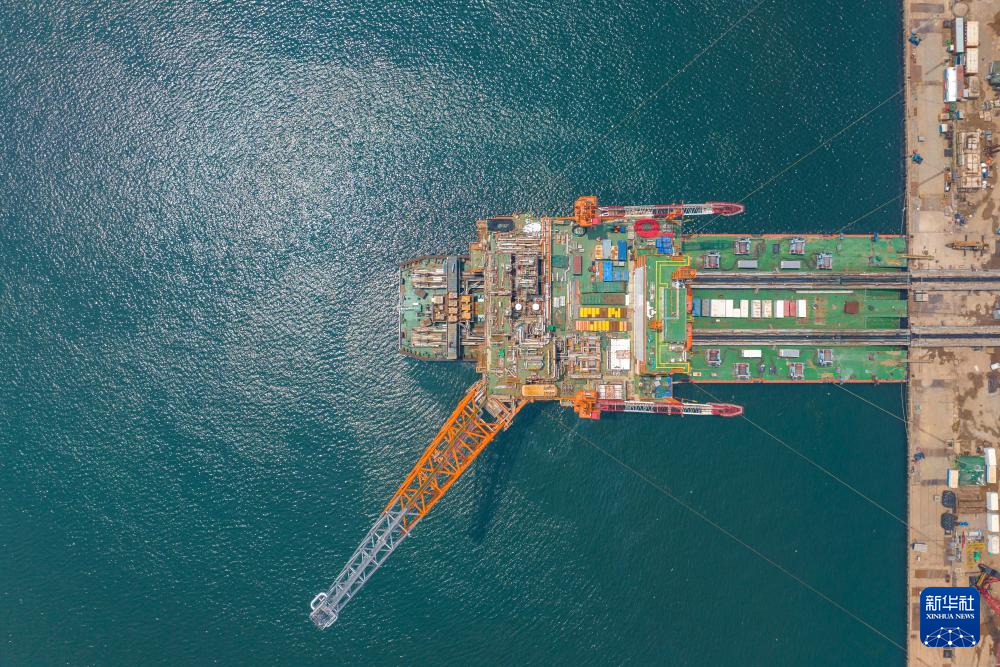 这是7月10日在山东省青岛市拍摄的渤中19-6凝析气田一期项目中心平台装船作业现场。新华社发(杜鹏辉 摄)