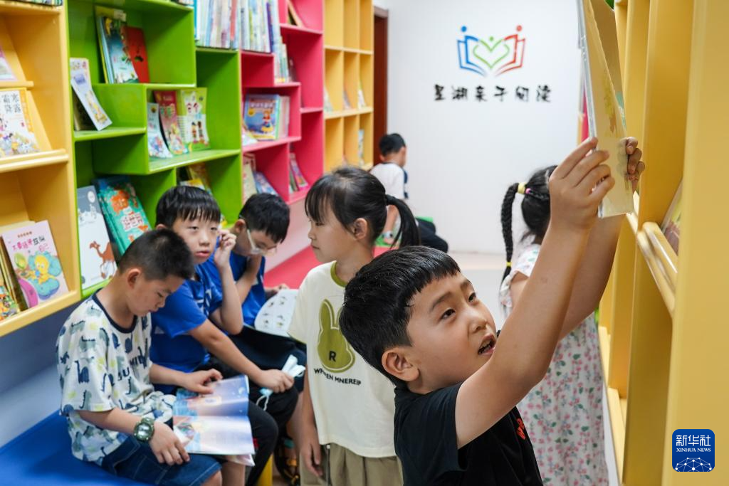 7月19日,在无棣县棣丰街道星湖社区服务中心,孩子们在图书室读书。