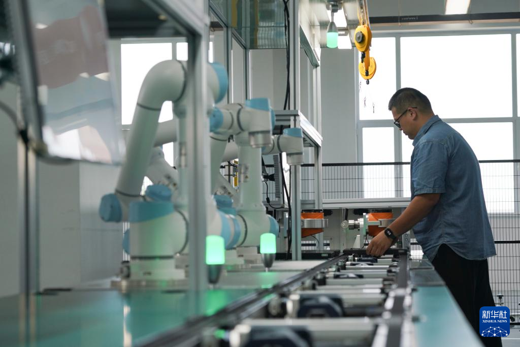 7月25日,在位于淄博市临淄区的遨博(山东)智能机器人有限公司,工作人员在调试设备。