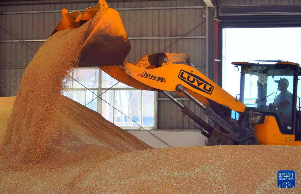青阜农业综合体收获的小麦。新华社记者邵琨 摄
