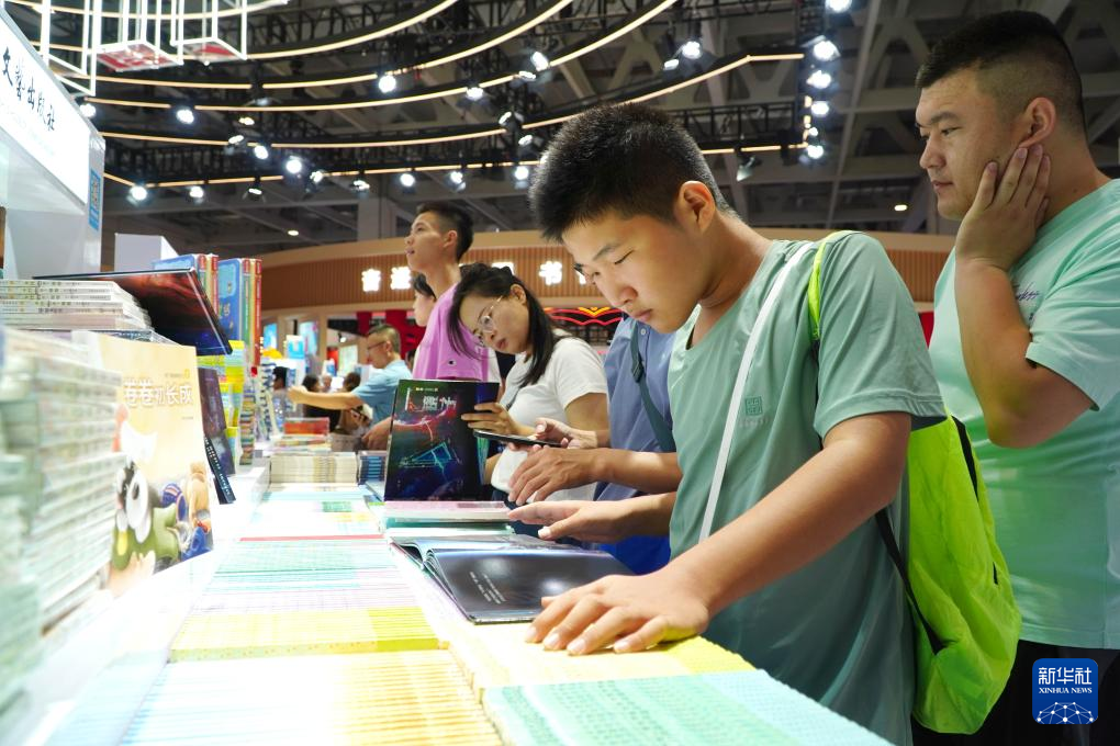 7月27日,在第31届全国图书交易博览会上,读者在阅览新书。新华社记者 徐速绘 摄