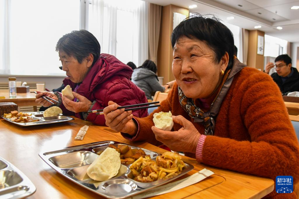 1月29日,老人们在济南市长清区马山镇综合养老服务中心餐厅内就餐。新华社记者 朱峥 摄