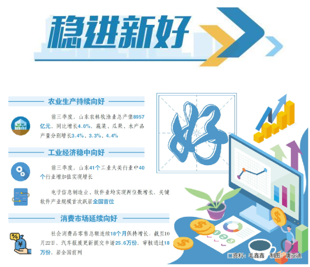 透过数据看成色,“好”字尽显。“总的看,前三季度山东省经济运行总体平稳,既有量的增长,更有质的提升,经济长期向好、稳定向好的基本面没有改变。”省统计局副局长傅相国说。