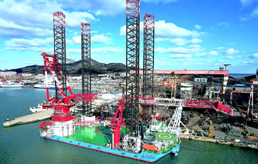 值得一提的是,船艉部装备的2000吨绕桩式全回转起重机,使其具备了对20兆瓦及以上各型海上风机的安装能力。总体技术指标居国内领先、国际先进,特别是起重能力、吊高和作业水深等性能,将我国自升式风电作业平台技术水平提升到全新高度。
