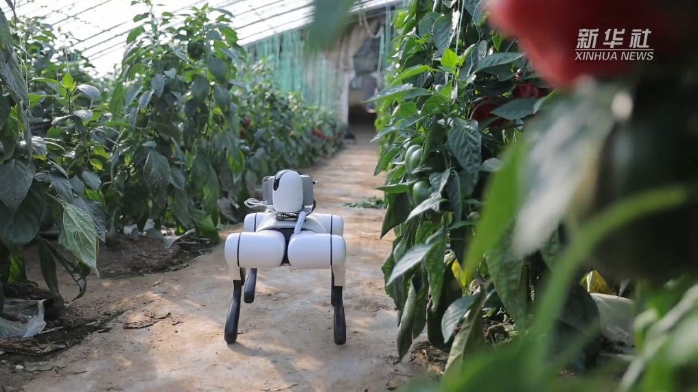 山东潍坊寿光是我国重要的设施蔬菜生产基地,科技赋能让大棚管理有了新变化。在寿光市农控园区的一处蔬菜智能大棚,搭载了摄像头、环境采集传感器的机器狗正在巡检。