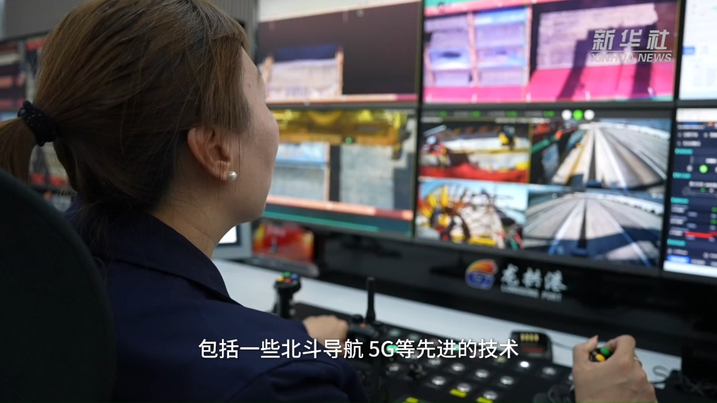 走进位于山东省济宁市的龙拱港中控室,巨大的电子屏幕上实时显示码头的运转情况。轨道吊、运输车、堆场、铁路装卸区……岸桥司机可远程操作起重机作业;集装箱无人卡车操作员坐在操控台前,即可实时监控多台车辆运行状态。