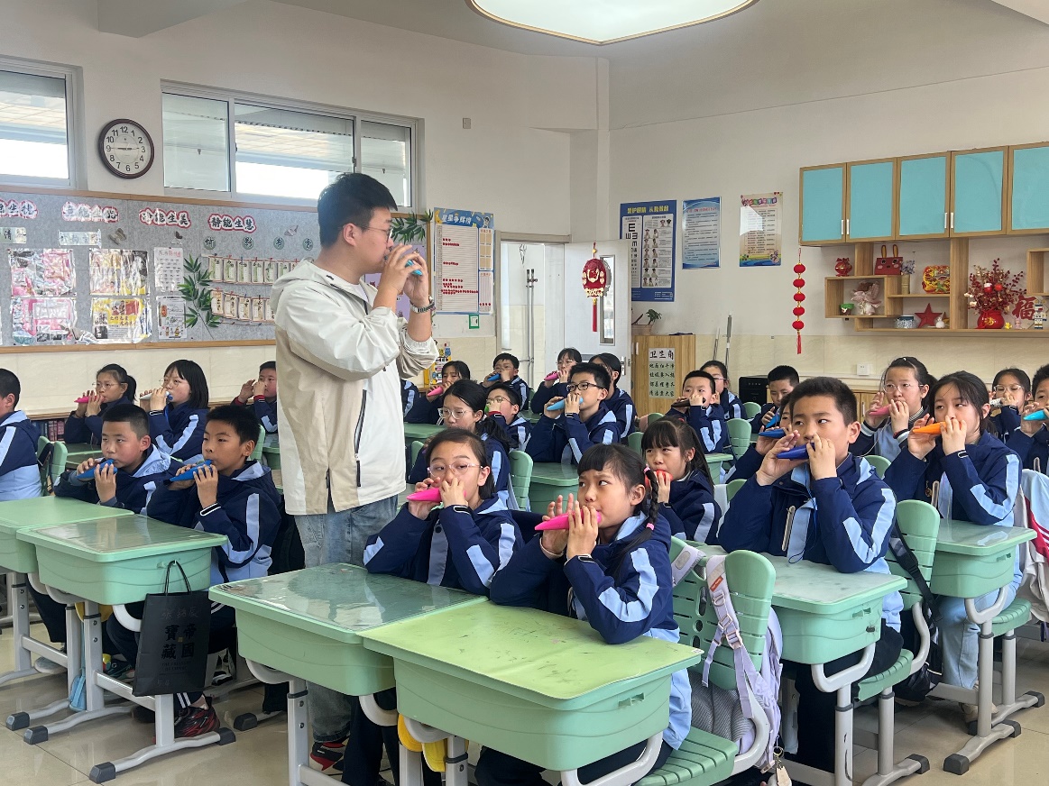 在东风学校五年级四班,学生们在老师的指挥下,专注地练习陶笛演奏。自2018年起,陶笛教学成为东风学校的特色音乐课程,迅速在全校引发学习热潮,累计已有1800人次参与学习。
