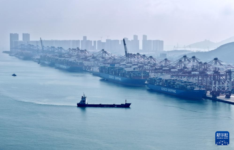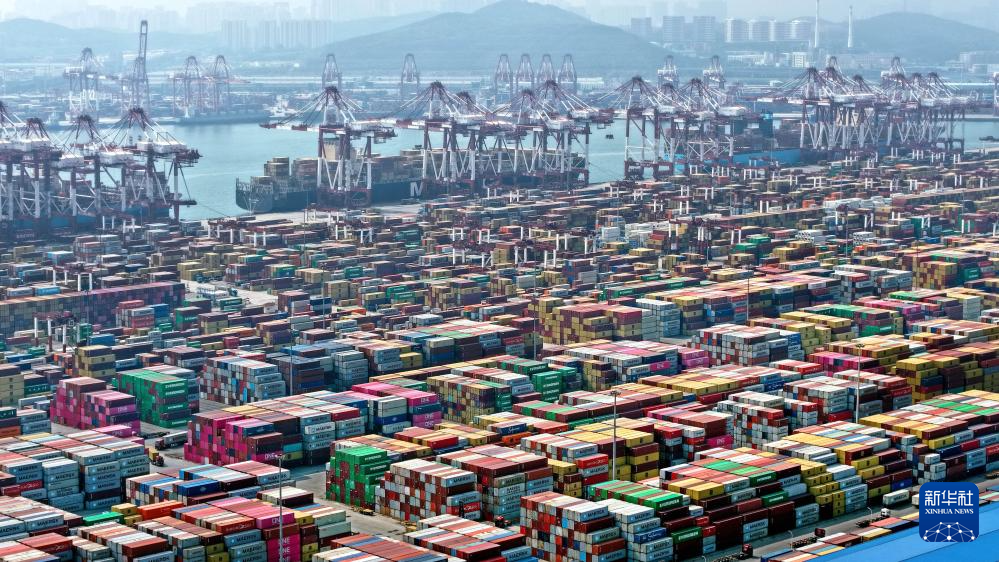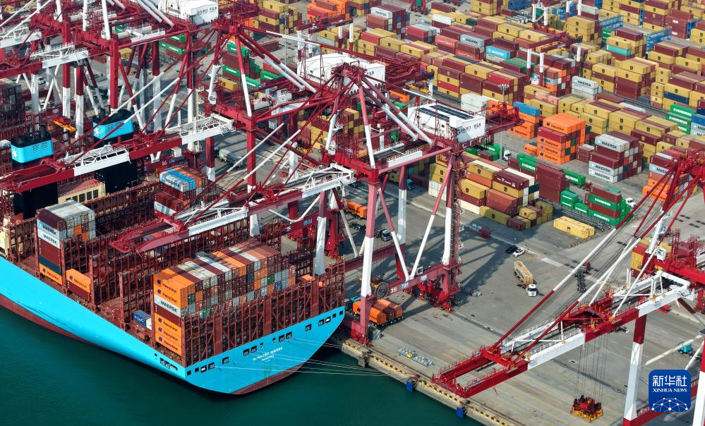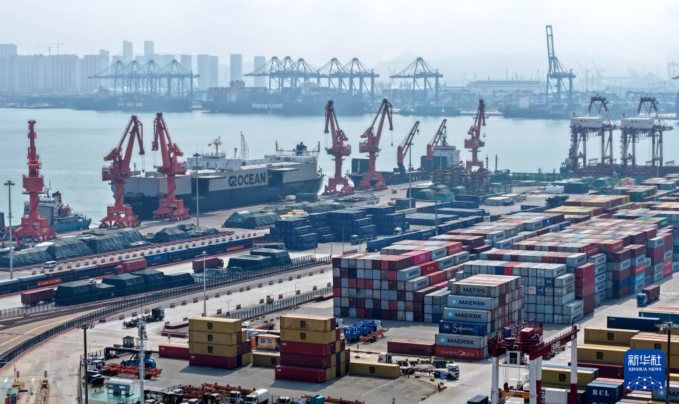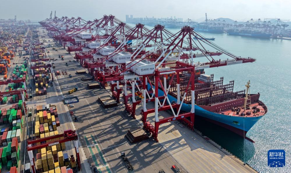 今年以来,山东港口青岛港外贸航线数量持续增加,截至7月底,新增13条集装箱航线、4条件杂货航线和5条海铁联运线路。目前,青岛港外贸航线累计达233条,通达180多个国家和地区的700多个港口。新华社记者 李紫恒 摄