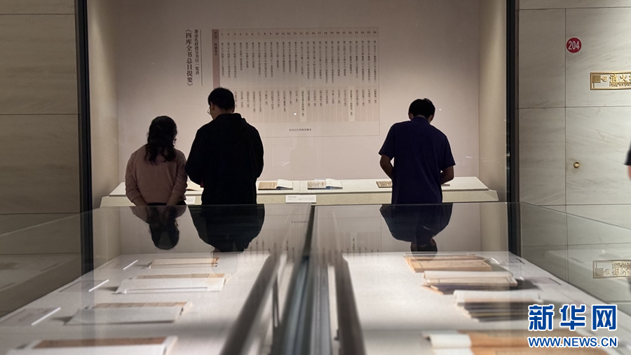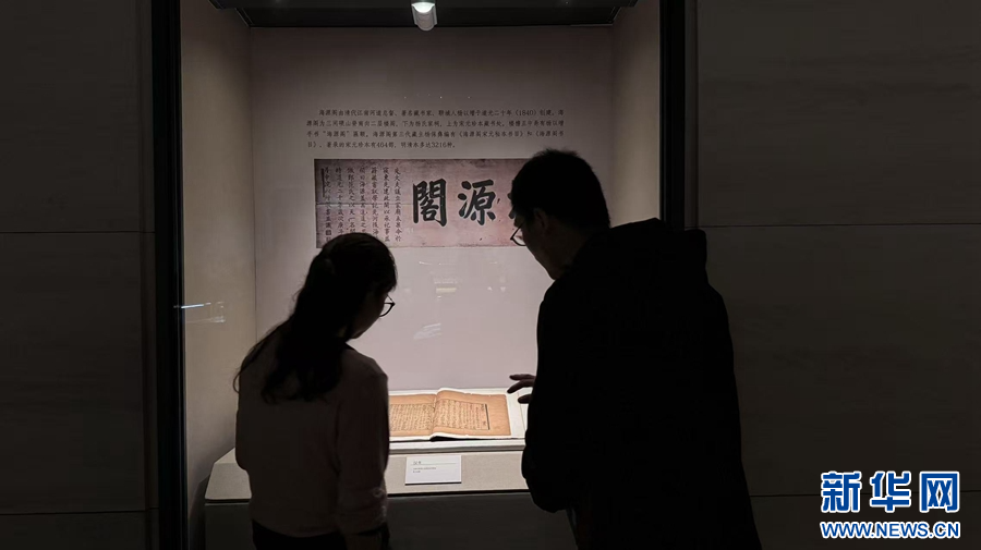 观众驻足展柜前,欣赏陈列的珍贵古籍。新华网发(张晓琪 摄)