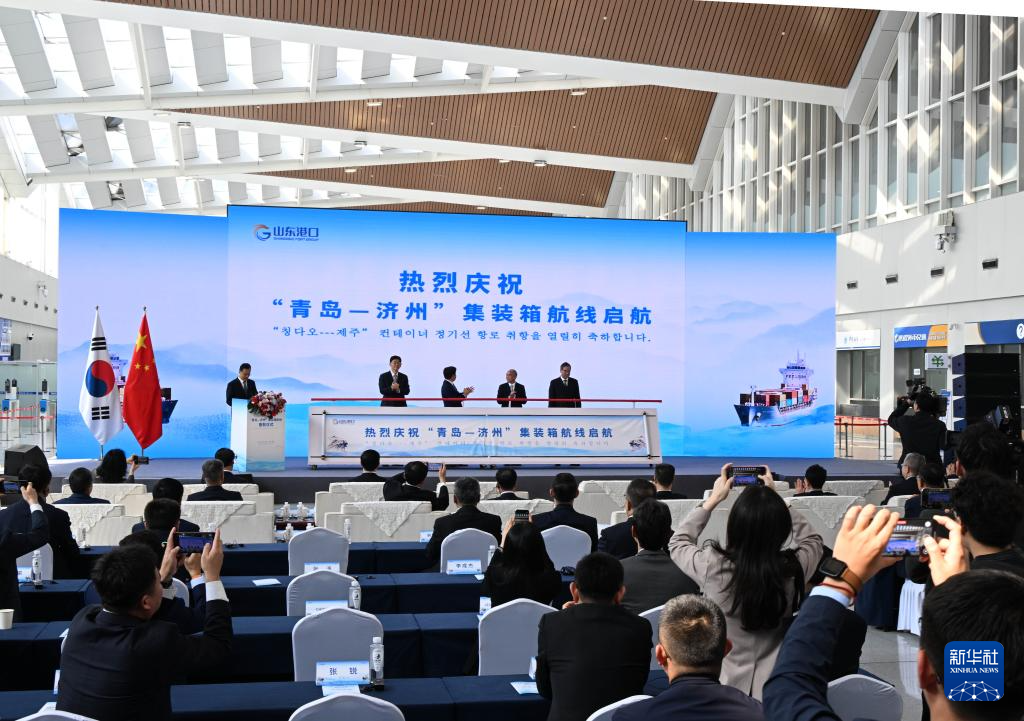 10月16日,“青岛—济州”集装箱航线启航仪式在青岛邮轮母港举行。新华社记者 李紫恒 摄