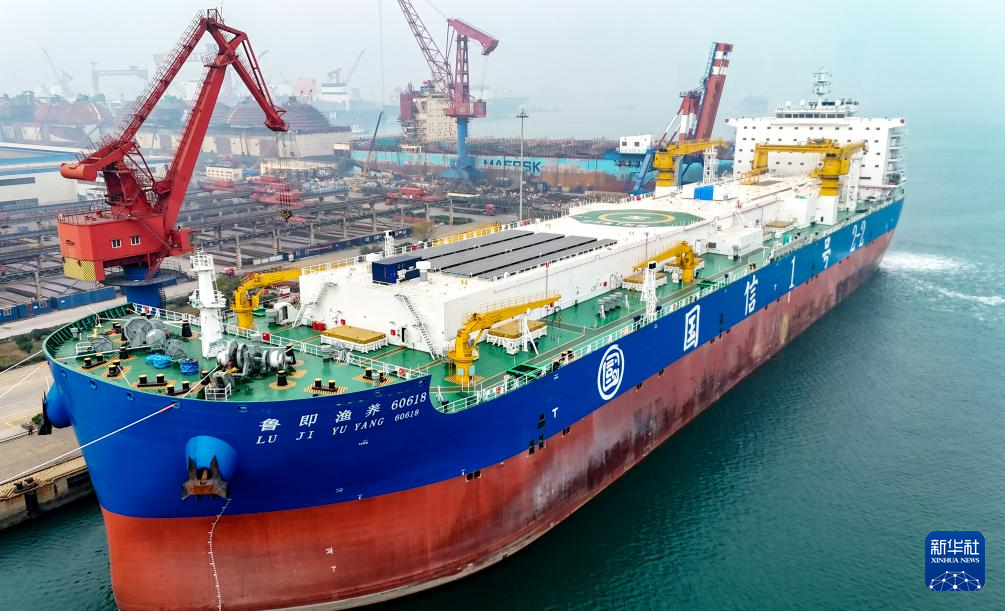 11月15日,由青岛国信集团投资建设的15万吨级智慧渔业养殖工船“国信1号2-2”在中国船舶集团青岛北海造船有限公司正式交付运营,命名为“鲁即渔养60618”。本次交付的养殖工船在投饲、取水等核心系统实现升级,将开展鲑鳟鱼工船全年连续养殖试验,构建从育苗到营销的全产业链模式。新华社发(张进刚摄)pagebreak