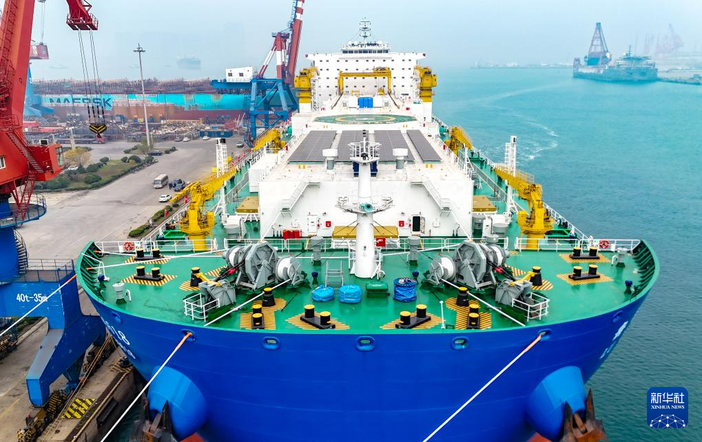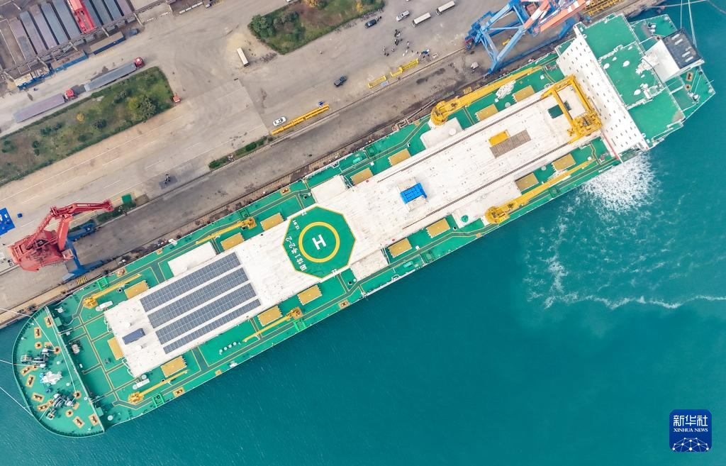 11月15日在中国船舶集团青岛北海造船有限公司拍摄的“国信1号2-2”船(无人机照片)。