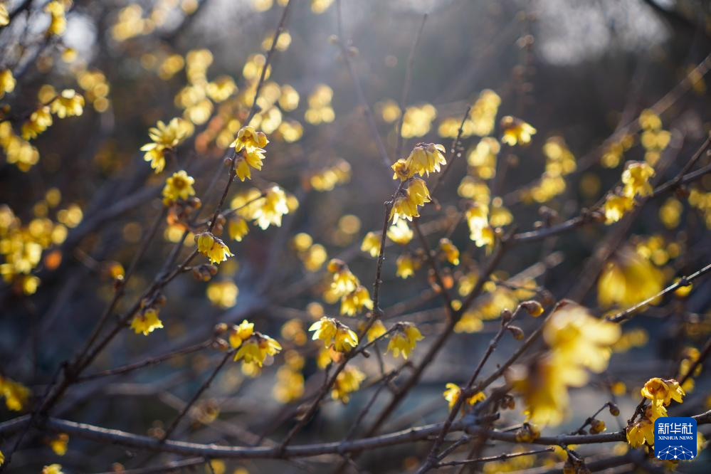 1月13日,在济南市千佛山公园腊梅园绽放的腊梅花。新华社记者 徐速绘 摄