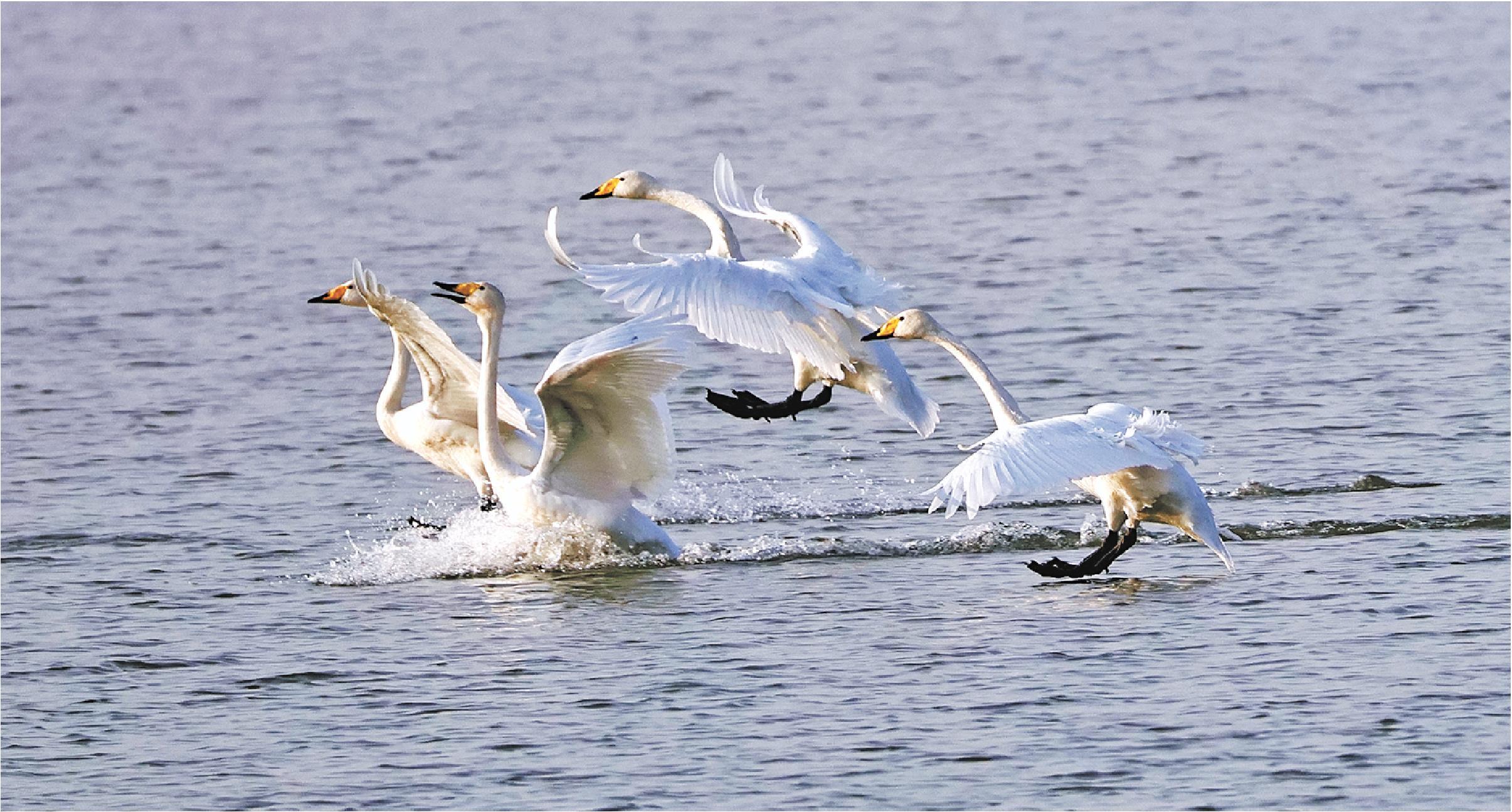 “随着库区和沉沙池周边湿地环境的改善,现在越冬鸟类数量已从早期的普通麻雀扩展到白鹭、灰冕鹤等数十种。”老崔指着湖中心的十几只白天鹅说,前段时间,他还和30多位追鸟人捕捉到了鹗捕鱼的精彩瞬间。