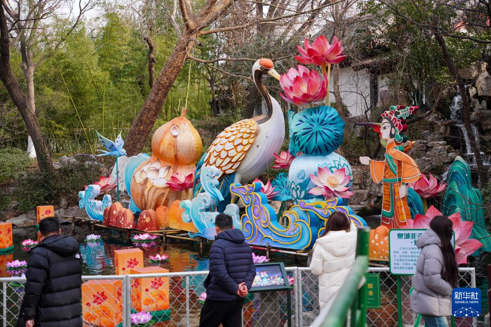 这是2月9日在济南天下第一泉风景区拍摄的一组大型彩灯。新华社记者 徐速绘 摄