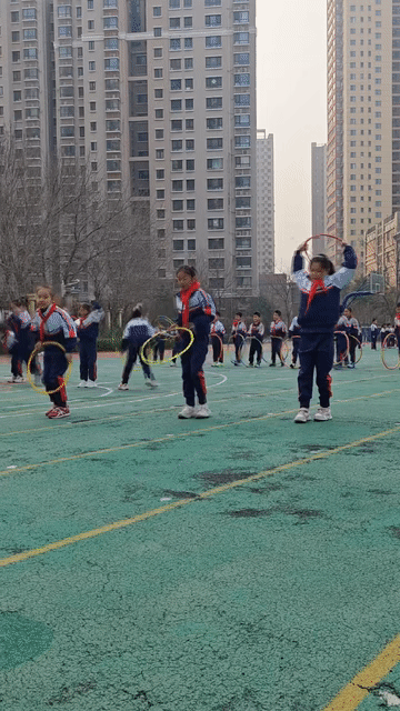 教学楼前的空地上,同学们里三层外三层围成一个大圆弧。几名老师站在学生中间,举着手机,笑眯眯地记录。几天前,高二15班的刘登晨主动报名表演花式跳绳。哨声一响,他深吸一口气,绳子旋即飞舞起来,先是单摇,紧接着是双摇,双脚轻快起落,不知不觉中,汗水顺着脸颊滑落。
