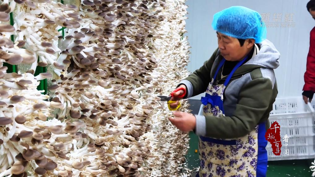 走进山东省禹城市张庄镇食用菌智慧农业基地,一簇簇鲜嫩的秀珍菇层层簇拥、饱满肥厚,工人们正熟练地采摘、打包、装箱,一派繁忙的丰收景象。