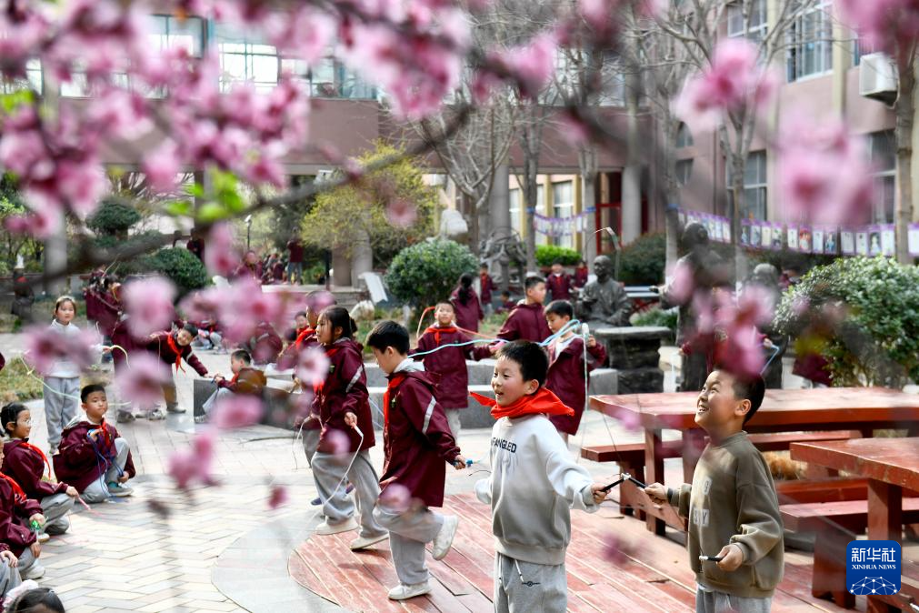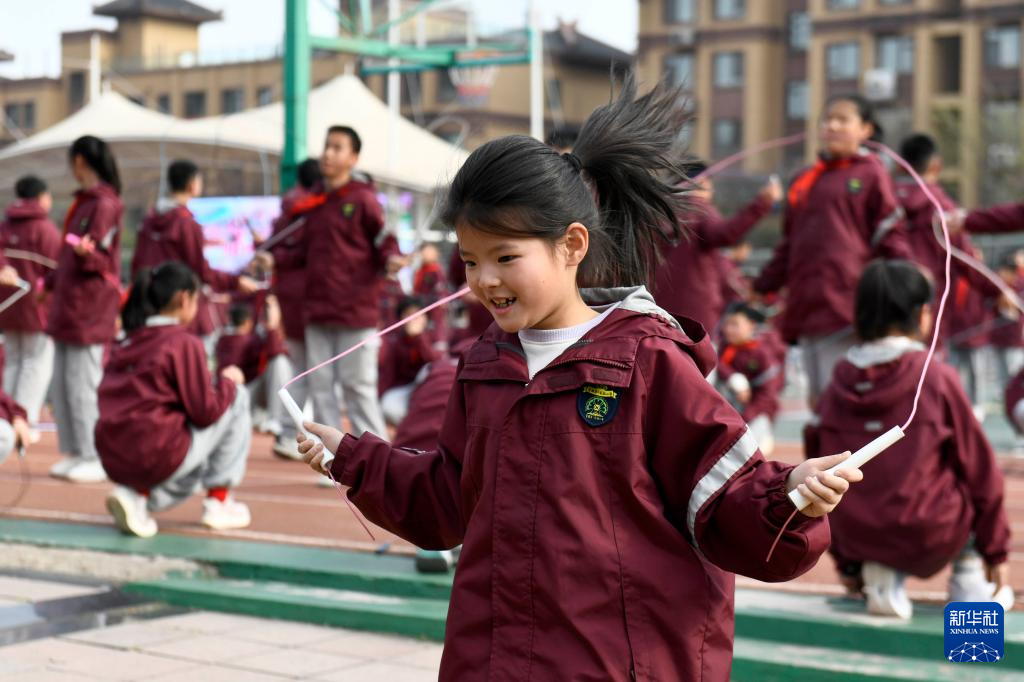 3月26日,在日照市莒县第一实验小学,同学们在进行阳光大课间活动。新华社记者 郭绪雷 摄