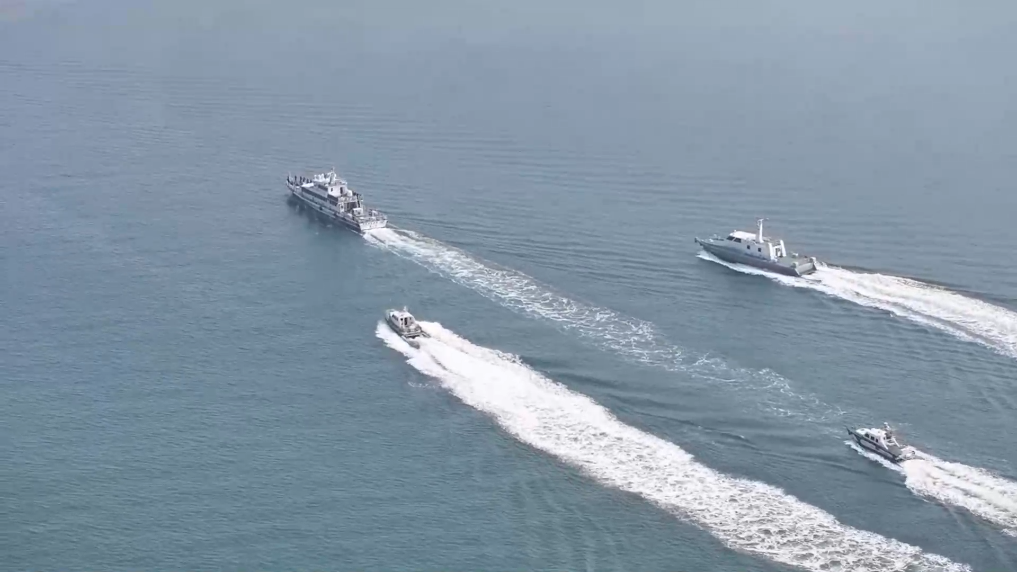 近日,山东出入境边防检查总站黄岛边检站联合海关、海事、海警、港航公安等涉海部门,在青岛海域开展“国门利剑2026”海陆空联合执法行动。4艘执法船艇组成联合执法编队,警用无人机同步升空,通过海上巡航、空中核查、大数据排查等方式,对青岛港及周边重点海域进行拉网式排查,严厉打击非法搭靠、违规登轮、走私、偷渡等违法犯罪行为。