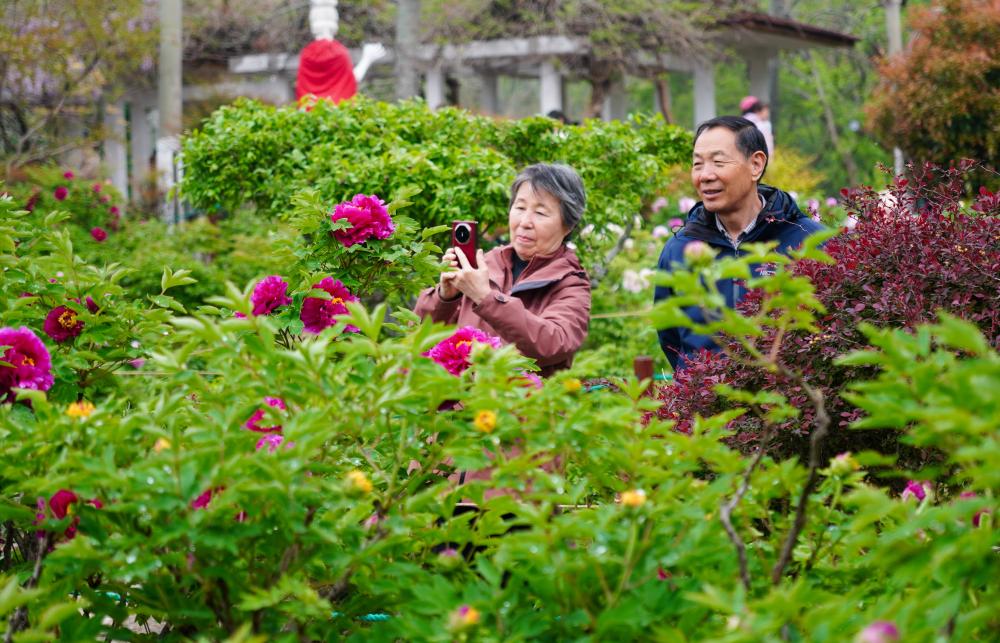 近日,在山东省济南市泉城公园内大面积种植的牡丹花进入盛开期,吸引了众多市民前来观赏。