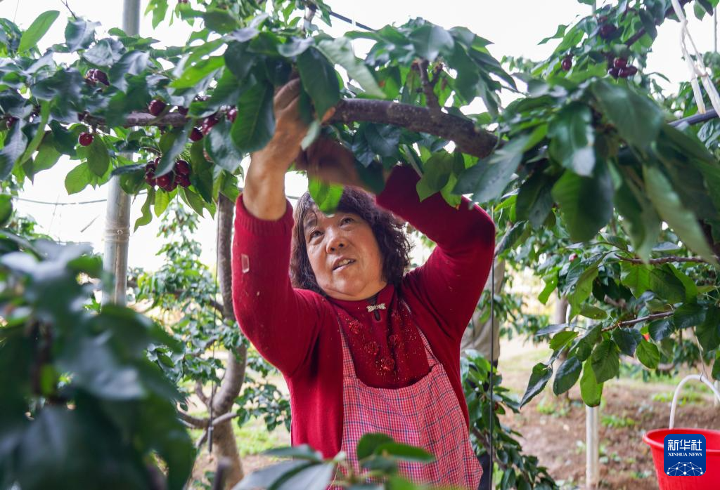 时下,山东省沂源县燕崖镇千余亩大棚樱桃陆续成熟上市,果农们抢抓农时采摘销售。目前,燕崖镇大樱桃种植面积达6万亩,是远近闻名的“樱桃小镇”。新华社记者 朱峥 摄