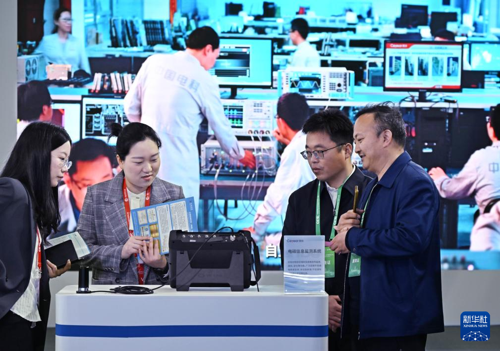 4月18日,参观者在雷达未来大会展览区参观交流。