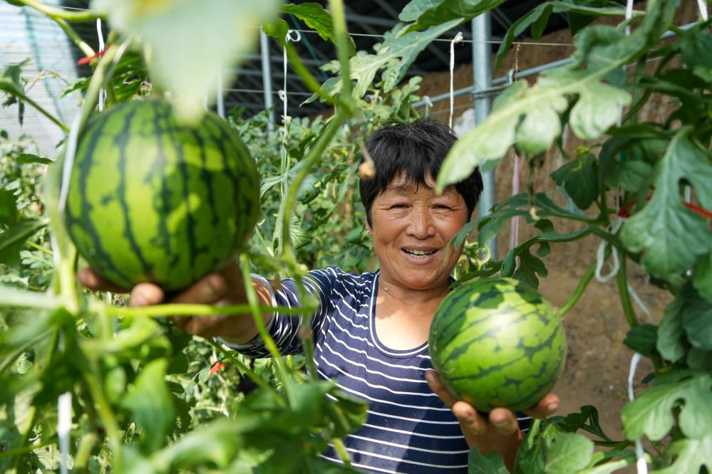 山东潍坊:小型西瓜成熟 瓜农收获忙