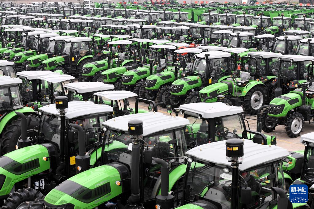 4月25日在山东省临沂市临沭县一家农业机械公司拍摄的拖拉机。新华社发(房德华 摄)