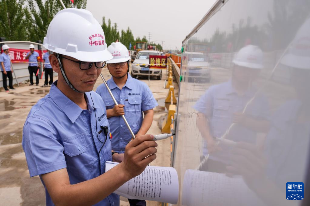 5月18日,参加演练的中铁四局施工人员在现场制定抢险计划。新华社记者 朱峥 摄
