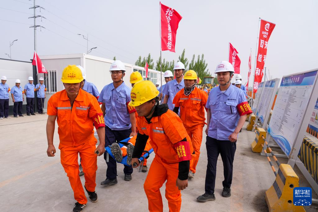 当日,山东济滨高铁公司在济南遥墙机场隧道施工现场举行2023年度防汛救援实战演练。