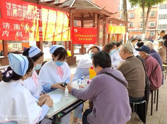 近日,济南市第四人民医院外科第一党支部、第三党支部、内科第二党支部联合南丁格尔志愿护理服务队,来到天桥区毕家洼社区进行义诊服务。