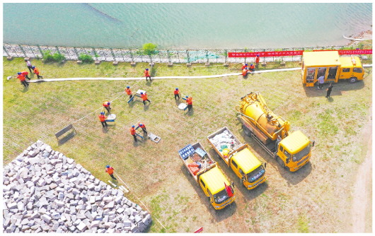 5月31日,山东省胶州市防汛救援综合实战演练在洋河镇山洲水库举行,来自当地应急局、水利局、消防救援大队、蓝天救援队等单位的120余人,进行堤坝抢险、群众转移、橡皮舟水上搜救等项目演练,增强防汛应急处置和水上抢险救灾能力。