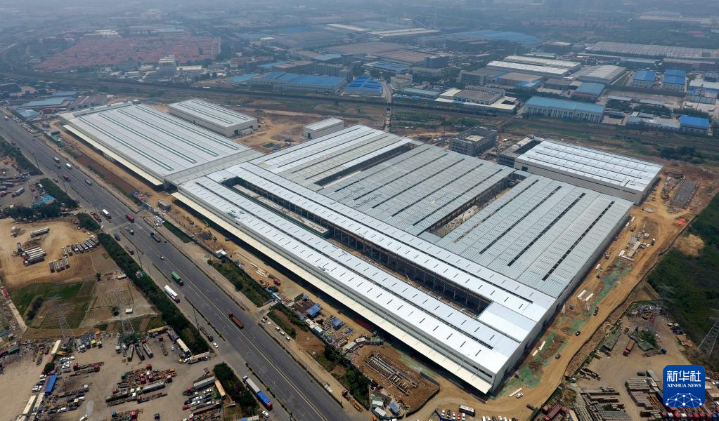 这是正在建设中的潍柴(青岛)智慧重工智造中心项目(6月6日摄,无人机照片)。该项目位于青岛市西海岸新区,总建筑面积20.5万平方米。