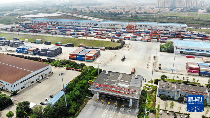 6月1日,俯瞰上合示范区多式联运中心(无人机照片)。新华社记者 李紫恒 摄