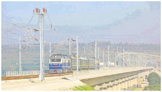 图为潍荣高铁莱荣段联调联试检测列车通过五龙河特大桥。