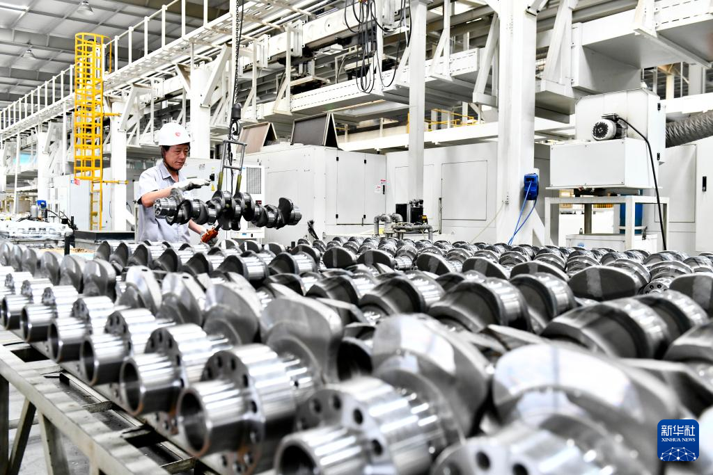 7月21日,在位于威海市文登区的天润工业技术股份有限公司,工人在吊运曲轴产品。