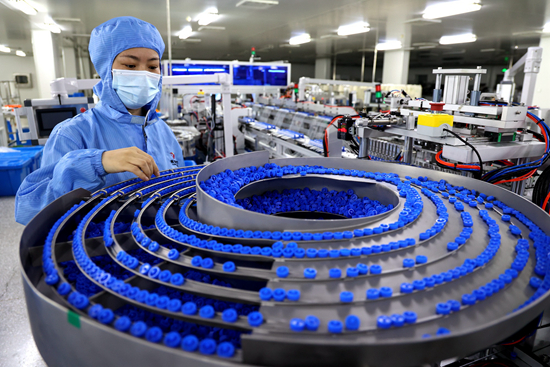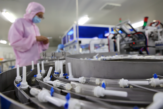 在山东省博兴县庞家镇一家医疗科技公司的车间,工人加紧赶制医疗器械的海外订单。