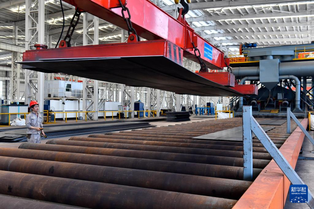 8月5日,在德誉精工科技(日照)有限公司,工作人员操作设备对钢板进行预处理。新华社记者 郭绪雷 摄