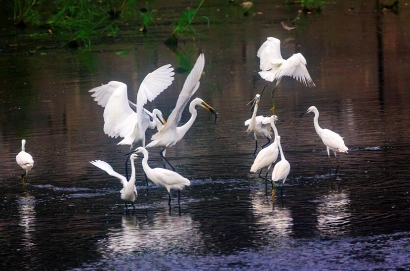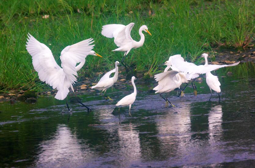 在五莲县有一条流经县城的洪凝河,通过多方面生态治理,水更清、树更绿、鱼更多,吸引了一大批白鹭前来驻留、落户,随处可见白鹭在翩翩起舞。