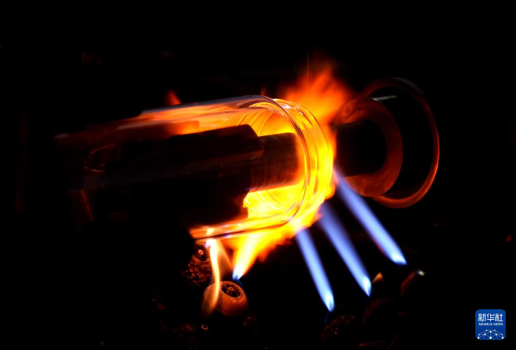 这是8月15日在山东省淄博市沂源县悦庄镇东埠村一玻璃制品企业拍摄的玻璃工艺品烧制加工场景。新华社发(赵东山摄)