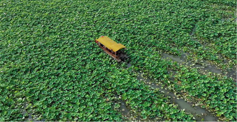 鱼游浅底、燕鸭翔集,走进位于太白湖东北侧的老运河人工湿地,一片片荷花、芦苇、再力花等水生植物层峦叠嶂,跃然眼前。十余年前,“退田还湿”“退渔还湿”栽下的一粒粒草种,已然结出“碧草青青、湖水澄澄”的生态硕果。