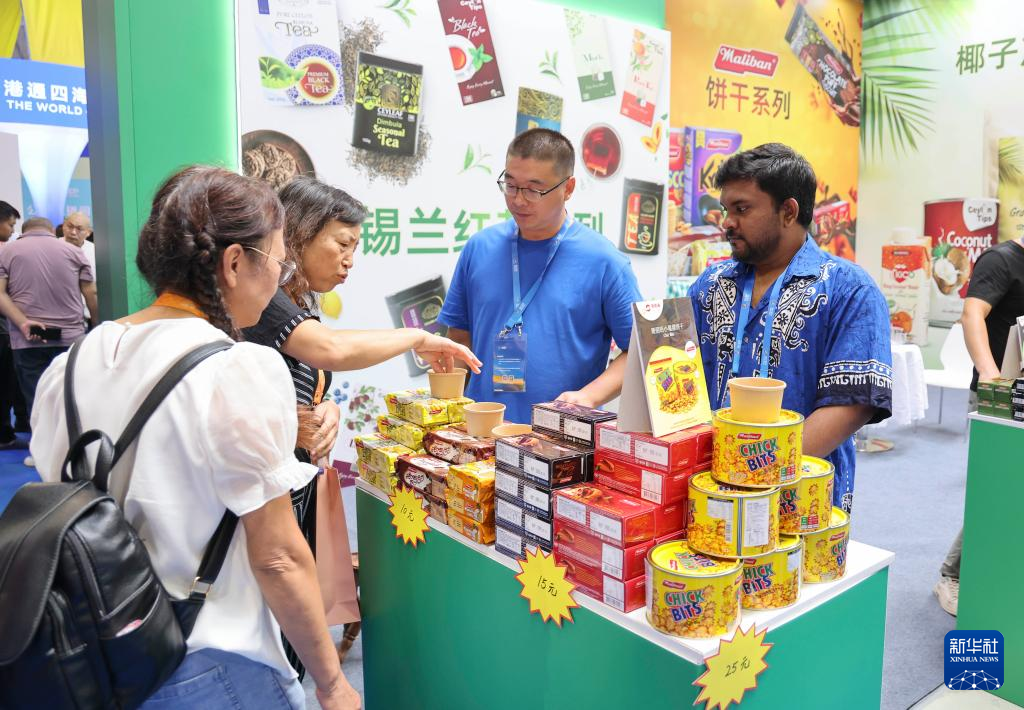 8月18日,参观者和展商在第三届RCEP区域(山东)进口商品博览会上交流沟通。新华社发(许传宝 摄)