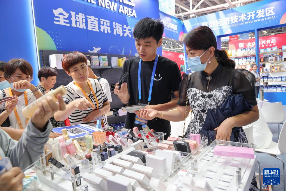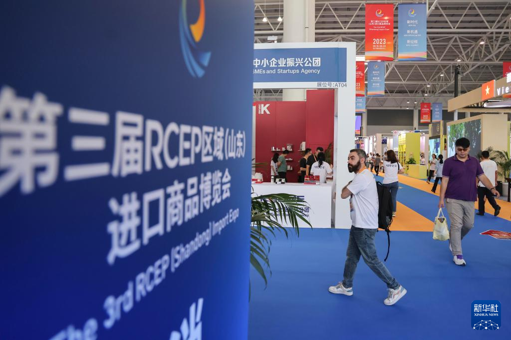 8月18日,人们在第三届RCEP区域(山东)进口商品博览会上参观。新华社发(许传宝 摄)