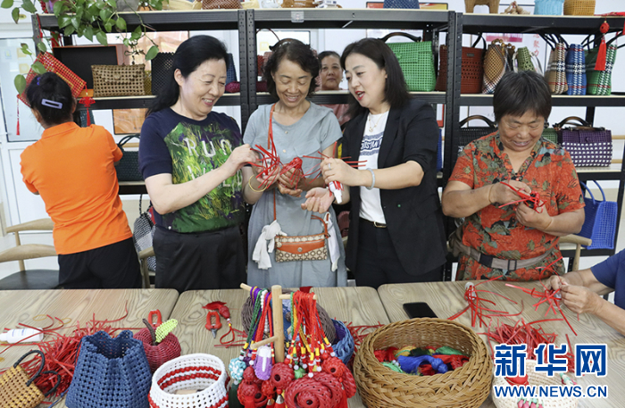 济南长清区东王社区日间照料中心组织开展编织活动。新华网发(李臣 摄)