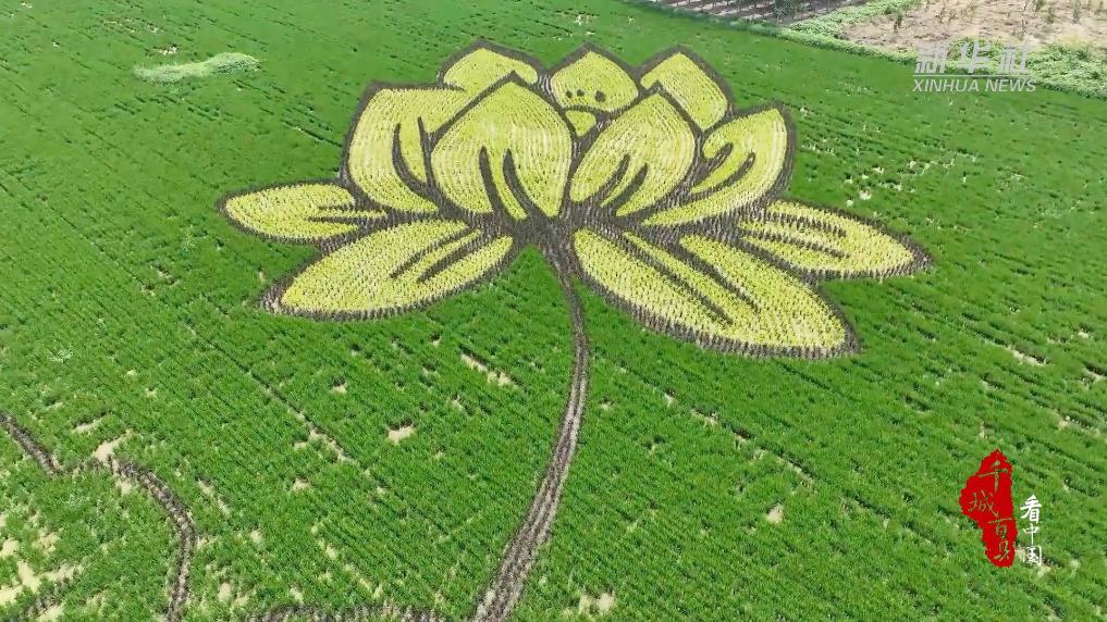以禾苗为笔,稻田为卷,秋初,山东省济南市历城区荷花路街道苌家庄村的巨幅“稻田画”开始成型。