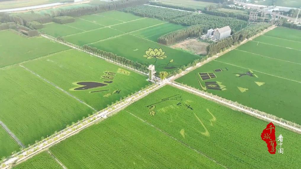 站在瞭望台的四个方向远眺,“绿水青山就是金山银山”“我爱济南”“荷花”“丰收”四幅稻田画映入眼帘。吐绿的稻田与精美的图画将美丽乡村的画卷徐徐展现在人们的眼前。